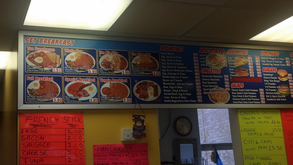 Welcome to Savoy Cafe, your go-to spot in Dagenham for hearty and delicious meals. Situated at 464 Lodge Ave, this charming cafe prides itself on its extensive breakfast menu that caters to all tastes. Start your day with favorites like Egg & Bacon, or indulge in the satisfying Blow Out Breakfast, featuring generous portions of eggs, sausage, and more.